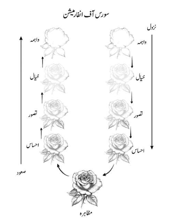 زید نے تحریک کے بغیر گلاب نہیں دیکھا۔ گلاب دیکھنے سے پہلے ، گلاب کی اطلاع ذہن پر وارد ہوئی۔ اطلاع کی دستک گلاب کی خوشبو سے زیادہ لطیف ہے کہ ذہن پر دستک کا دباؤ محسوس نہیں ہوا۔ اندر کی دنیا میں دیکھنے والے خواتین و حضرات ماہرین جن کا علم مشاہداتی ہے ، وہ اس مرحلے کو اطلاع کی پہلی منزل کہتے ہیں اور واہمہ کا نام دیتے ہیں۔