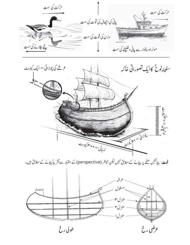 میں سفینہ نوحؑ کی تفصیل ہے۔ حضرت نوح ؑ نے الہامی علوم کے تحت غیر معمولی جسامت