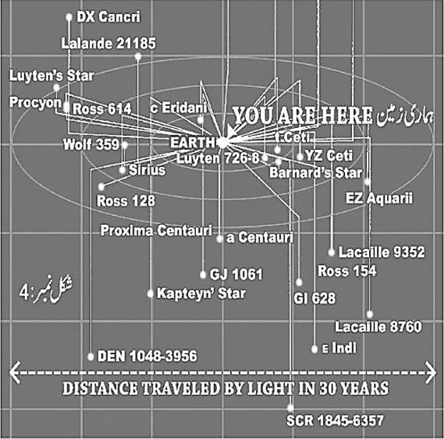 ہم زمین کو مرکز مان لیں تو معلوم ستاروں کا درمیانی فاصلہ 30 نوری سال بتایا جاتا