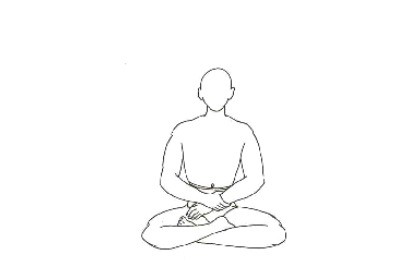 فرش یا چوکی پر بیٹھ کر بائیں پیر کو سمیٹ کر دائیں ران کے نیچے رکھ لیں اور دایاں پیر سمیٹ کر بائیں ران کے اوپر رکھ لیں۔ کمر اور ریڑھ کی ہڈی سیدھی رہے لیکن اتنا تناؤ نہ ہو کہ عضلات کھنچ جائیں اور اتنا خم نہ ہو کہ کمر جھک جائے۔ اس نشست میں دونوں ہاتھ گھٹنوں پر رکھ لیں۔ ہاتھوں کو گود میں بھی رکھا جاسکتا ہے۔