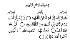 Pagkatapos ng Isha, basahin ito nang isang daan at isa (101) beses, pagkatapos ay hipan sa mga kamay at ipahid ang mga kamay sa mukha nang tatlong (3) beses. Ipagpatuloy ang gawaing ito sa loob ng dalawampu’t isang (21) araw, apatnapung (40) araw, o siyamnapung (90) araw, ayon sa kalagayan.