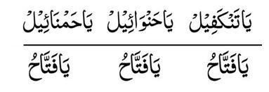 Isulat sa isang papel (anumang uri ng tinta), pagkatapos ay tupiin ang papel nang apat na beses upang gawing anting-anting. Ilagay ito sa pagitan ng dalawang bato sa isang lugar na hindi gagalawin o gagalawin ng sinuman. Ang bawat bato ay dapat may bigat na hindi bababa sa dalawang seer. Ang dalawang bato ay dapat patag upang ang bigat ng nakapatong na bato ay lubusang dumidiin sa anting-anting. Tandaan: Upang maging mas mabilis ang epekto at mas makapangyarihan ang anting-anting, isulat muna—bago ito tupiin—ang pangalan ng taong sisingilin ng utang kasama ang pangalan ng kanyang ina. (2) Pagkatapos ng Ṣalāh al-‘Ishā’, bigkasin ang Āyat al-Kursī hanggang sa huli nang apatnapu’t isang (41) ulit, saka hipan ang mga kamay at ipahid ang mga ito sa mukha nang tatlong beses. Pagkatapos nito, manalangin para sa pagkolekta ng utang. Ang tagal ng gawaing ito ay siyamnapung (90) araw. Ang mga kababaihan ay bilangin ang mga araw ng pahinga at kumpletuhin ito pagkatapos.