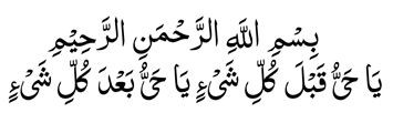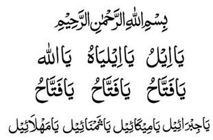 Matapos lumampas ang hatinggabi, umupo sa prayer mat nang may ablution at basahin ito nang tatlong daan (300) beses. Pagkatapos ay manalangin para sa pagiging maayos ng mga kalagayan, at matulog nang hindi nakikipag-usap sa sinuman. Sa loob ng pinakamataas na dalawampu’t isang (21) araw, makakamtan ang di-nakikitang tulong mula sa Allah, sa alinmang paraang Kanyang maibigan.
